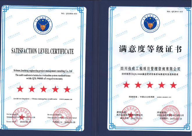 俊成建昱工程集團(tuán)有限公司始建于二零零九年二月,中凱俊成建設(shè)咨詢有限公司為旗下子公司,公司分別位于四川省成都市成華區(qū)、德陽(yáng)市凱州新城,公司注冊(cè)資本5000萬(wàn)元人民幣。中凱俊成通過(guò)了ISO9001質(zhì)量管理體系、ISO14001環(huán)境管理體系、ISO45001職業(yè)健康安全管理體系認(rèn)證。   公司目前具有工程監(jiān)理綜合資質(zhì),工程造價(jià)咨詢甲級(jí)資質(zhì),工程招標(biāo)代理甲級(jí)資質(zhì),冶金行業(yè)(冶金礦山工程) 甲級(jí)設(shè)計(jì).....[詳情]